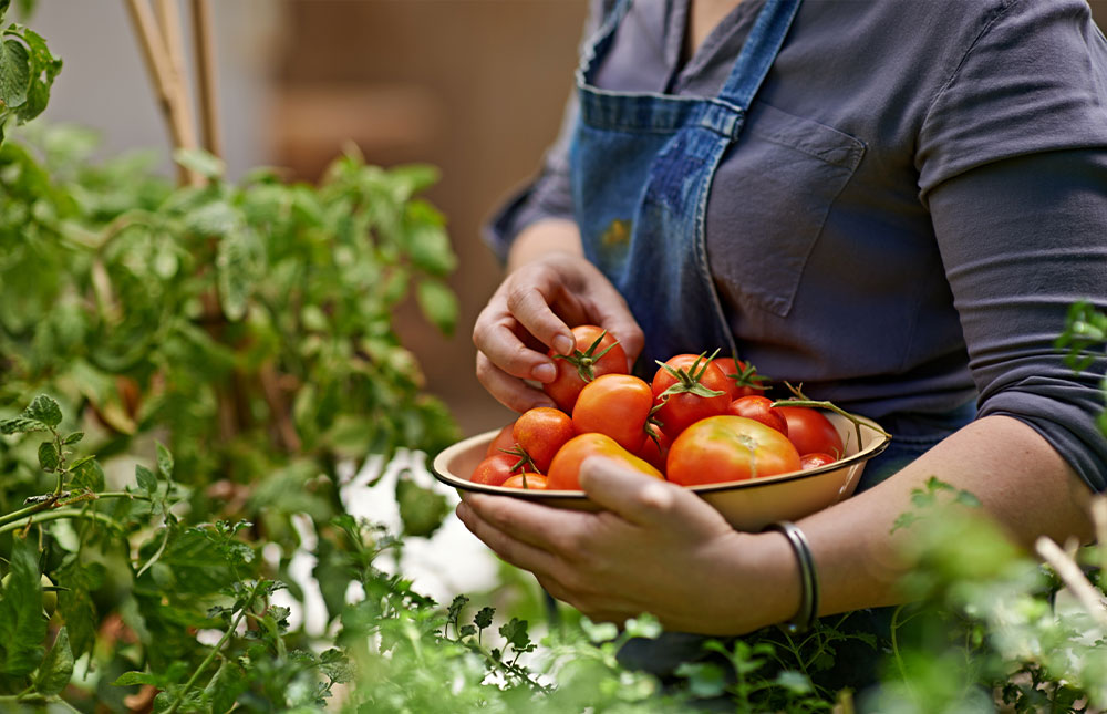 Community garden with raised veggie and herb beds